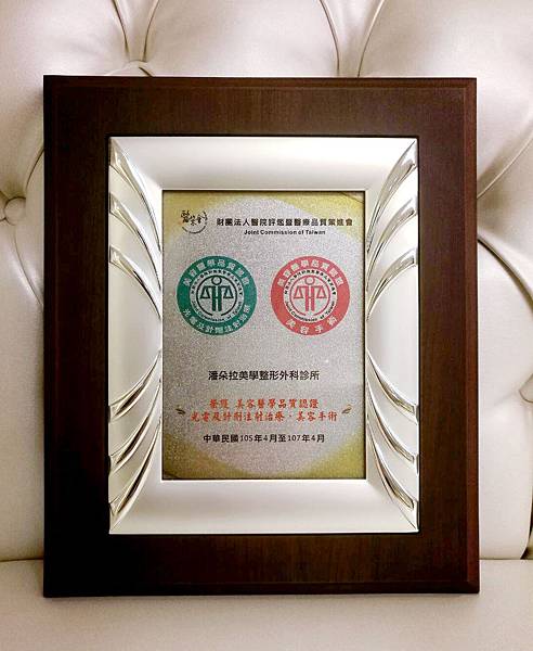 潘朵拉美學整形外科診所 榮獲 美容醫學(美容手術+光電針劑)雙品質認證